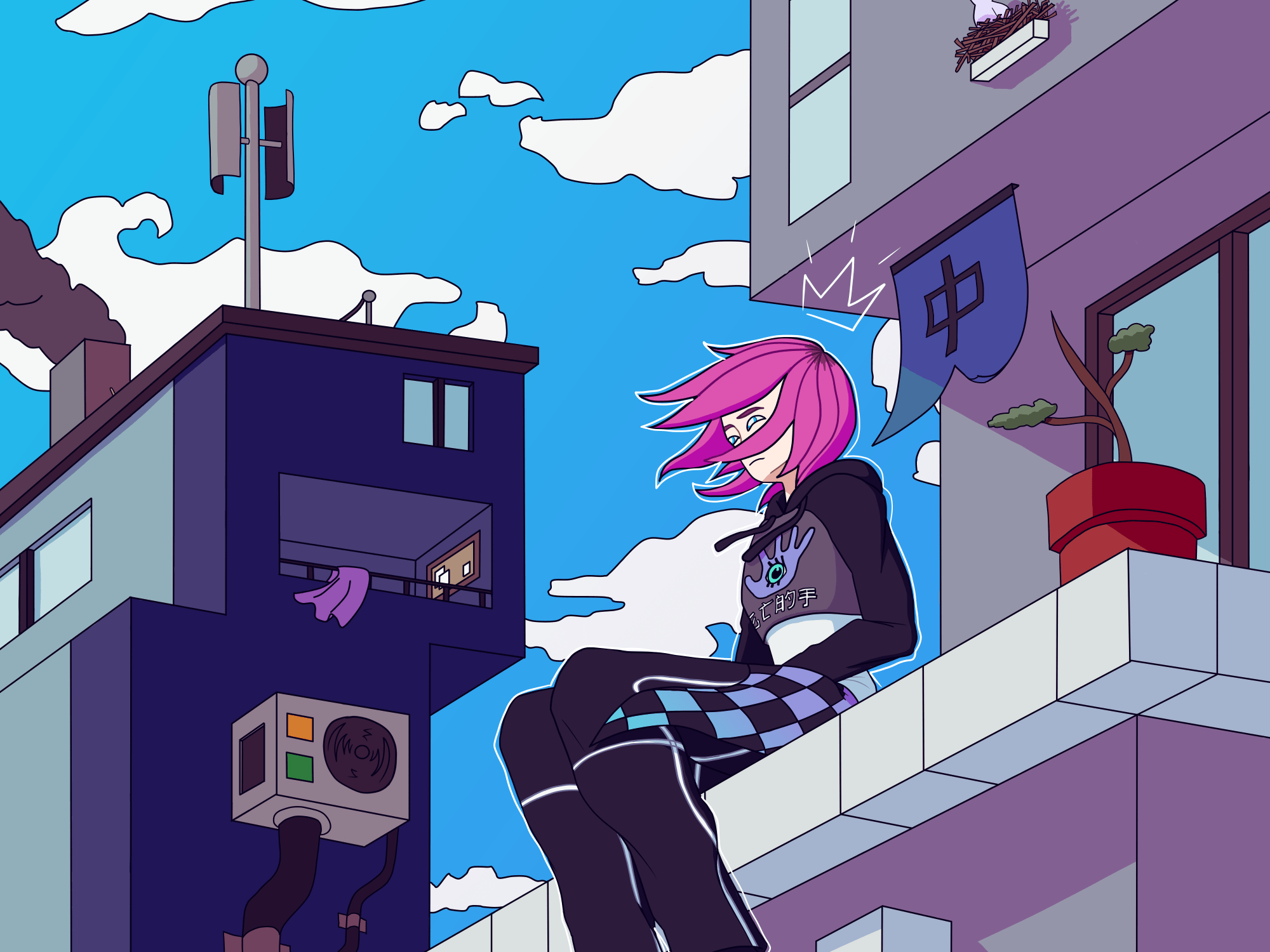 So, Bridget Underwood (@bridgitiri) made a series of posts on Instagram about perspective storyboarding. What I took away from that was how to make perspective drawings (mostly because I thought that’s what they were going to be about beforehand). Anyway, using their tips I was able to put something together that I think is visually interesting.