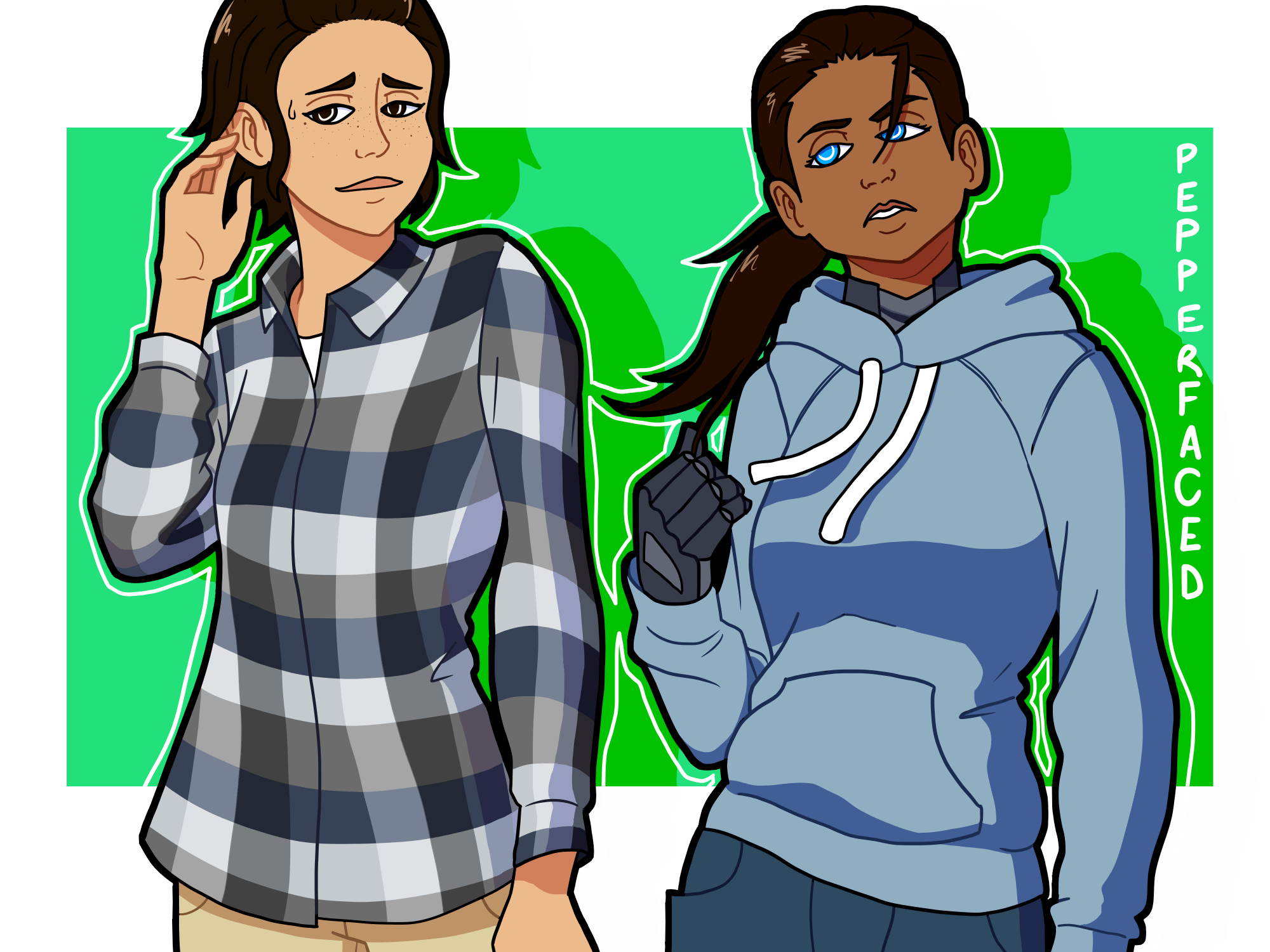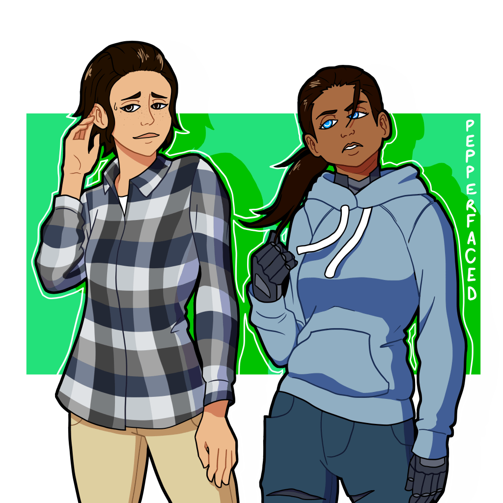 So you may know about The Eyes of Jolene, the one book I’ve written. Well, I’m writing the sequel currently and decided to draw these two from a scene I’m currently writing. The caption I used on Instagram was “POV: These two girls show up to your house and start asking questions”, and that sums up the beginning of the scene pretty well.
